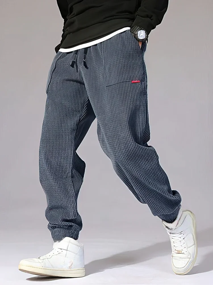 The ribbed corduroy texture adds a stylish touch, while the relaxed fit and tapered legs ensure a modern silhouette. Perfect for lounging, casual outings, or urban fashion looks.