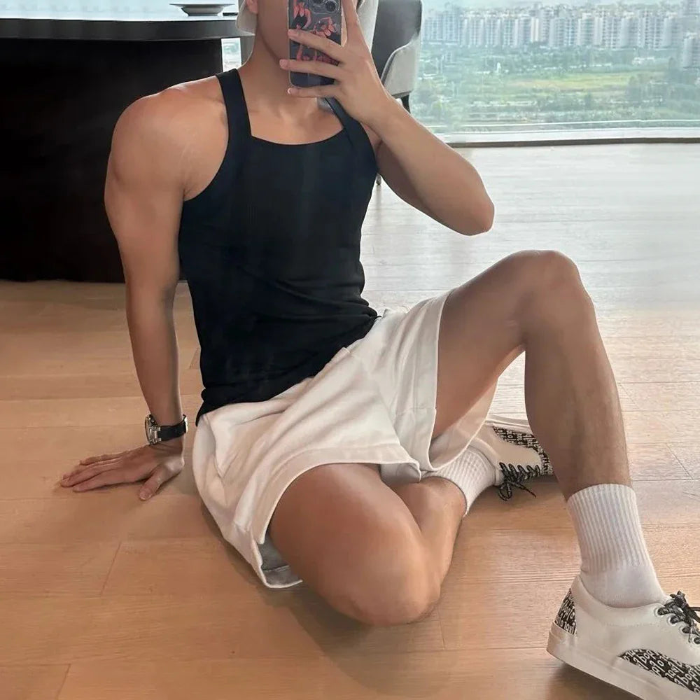 The solid color tank top for men is available in versatile black and white, allowing easy pairing with joggers, shorts, or jeans. Its minimalist muscle fit vest style works great for layering under jackets or hoodies, making it an all-season essential.