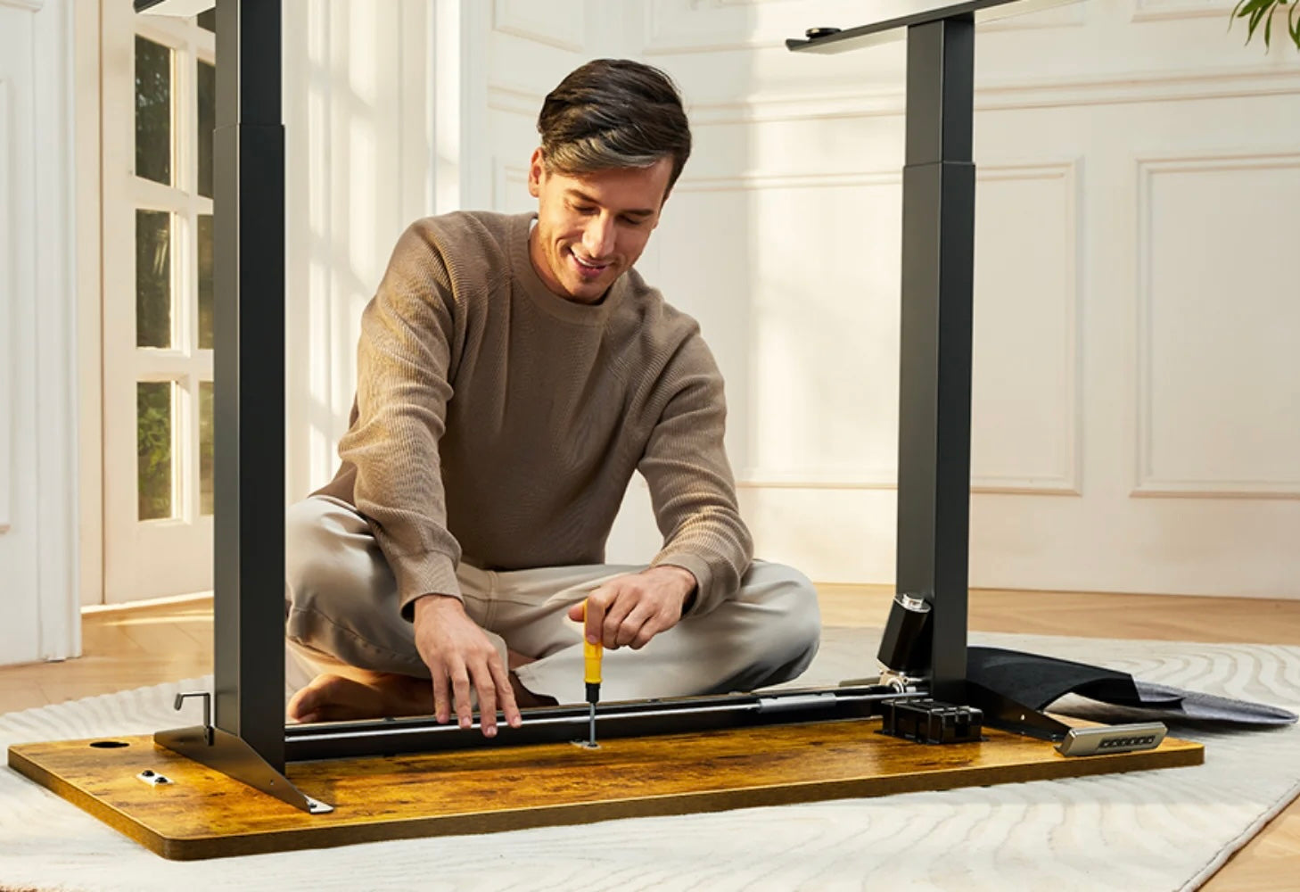 Experience the perfect blend of ergonomics and productivity with our electric height-adjustable desk. Designed for those who prioritize comfort and efficiency, this motorized sit-stand desk effortlessly transitions from sitting to standing at the push of a button. Whether you're working from home or in the office, our electric adjustable desk ensures optimal posture, reducing back pain and increasing focus. The powerful electric motor provides smooth, quiet adjustments, allowing you to customize the desk height to your exact preference.