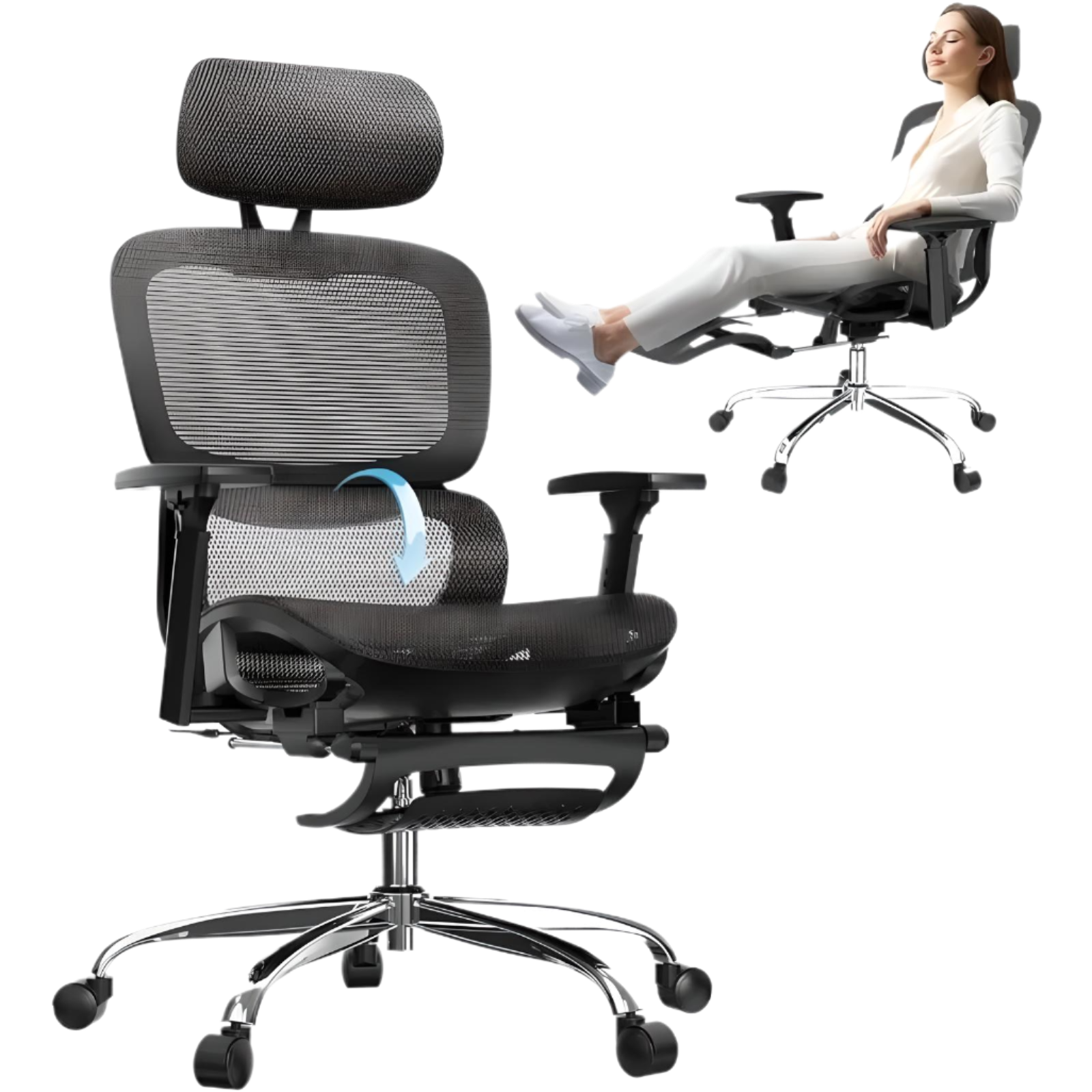 Ergonomic Office Chair,Office Chair with Adjustable Lumbar Support and Seat Depth, Retractable Footrest