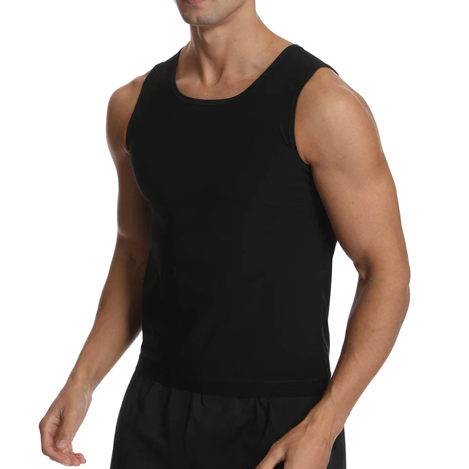 The performance compression layer smooths your torso, shapes your waistline, and supports your posture — making it a perfect shapewear for men looking to tone their midsection, flatten the belly, and hide love handles. With its anti-slip waistband, this vest stays in place during all movements — no rolling up or discomfort.