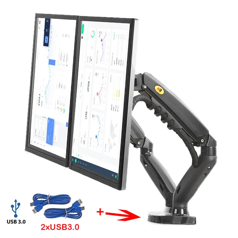 360 Degree Gas Spring Desktop 17"-27" Dual Monitor Holder Arm