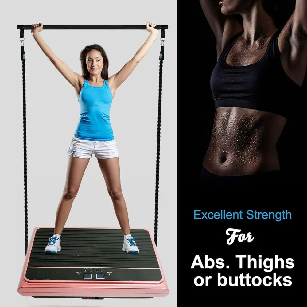 - ❤【EXTRA PILATES STICK+RESISTANCE BANDS】Compare with other vibration platform machine in the market, this exercise vibration platform adds pilates bar and resistance bands, allowing you to get leg, arm, shoulder training, strength training, and cardio exercise right at home!